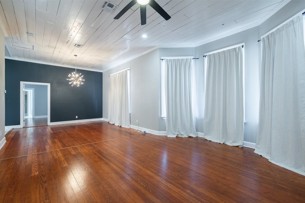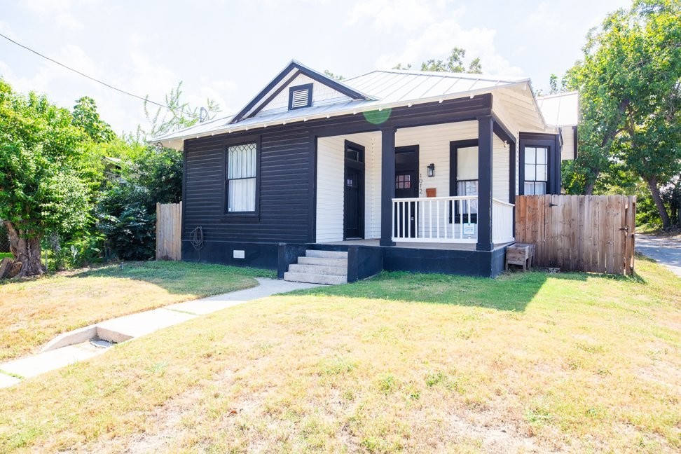Historic Charm Meets Modern Living in Dignowity Hill! Welcome to your new home on Dawson Street, perfectly situated in the heart of the thriving and historic Dignowity Hill neighborhood! Experience the best of downtown living-just minutes from the newly renovated Dignowity Park, St. Paul Square, The Pearl, Downtown San Antonio, and the Fairchild Park pickleball courts. Step inside and fall in love with the blend of historic character and modern upgrades. This beautifully preserved home features original hardwood floors, 12+ ft ceilings with exposed shiplap, and large windows that flood the open-concept living, dining, and kitchen areas with natural light. The updated kitchen is a dream-complete with a large island, granite countertops, ample cabinet space, and stainless steel appliances, including a gas stove, French-door refrigerator, and dishwasher. Your primary suite offers a serene retreat, featuring an updated bathroom with a double-sink vanity, standalone soaking tub, walk-in shower, and his-and-hers walk-in closets. Enjoy convenience with a Samsung washer and dryer, additional cabinetry in the laundry area, and modern blackout curtains already installed throughout.