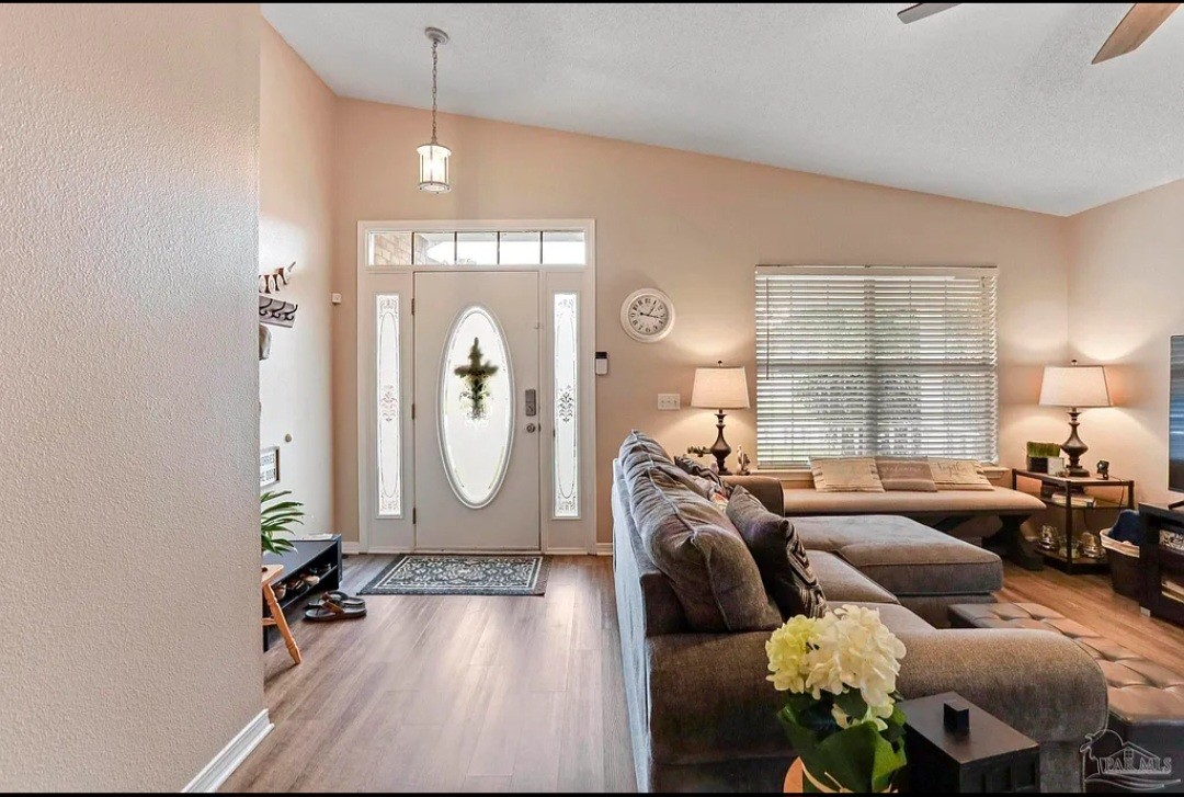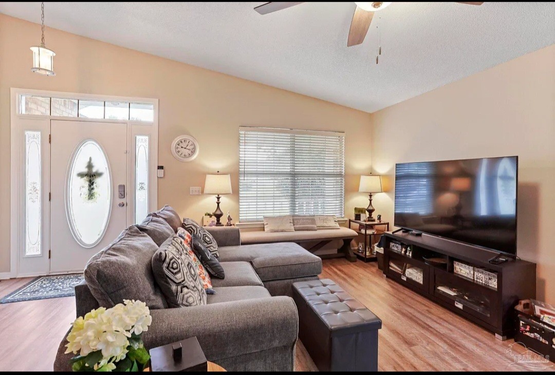 Discover this beautiful home in the Ashley Place subdivision, This nicely updated 3-bedroom, 2-bath residence, and 2-car garage offers a warm and inviting atmosphere, conveniently located near shopping, hospitals, schools, and I-10. Upon entering, you'll be greeted by a spacious dining area and recent LVP flooring and carpet throughout. The kitchen features beautifully refaced cabinets, new granite countertops and backsplash, a pantry, newer appliances, and ample counter and cabinet space. The expansive living area, complete with a wood-burning fireplace, provides a cozy and welcoming environment. All bedrooms are thoughtfully situated on one side of the home. Two of the bedrooms are located at the front, along with a full bathroom. The large master bedroom, offering a walk-in closet, is privately positioned off the living area. This home has received numerous updates, including light fixtures, fresh paint, carpet, blinds, bathroom mirrors, and vanity. The master bathroom has new quartz countertops and a newly tiled shower with shower head, hand sprayer and sliding glass doors. The backyard is perfect for outdoor entertaining, featuring a lovely deck, a firepit, and a privacy fence. Not to mention you have the added privacy of no neighbors behind you or to your right. Don't miss the chance to make this house your charming home!