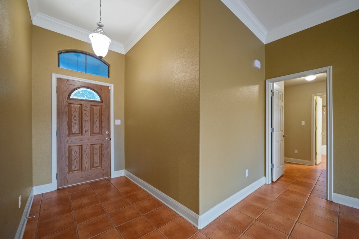 You rarely see a home like this for lease! The three-bedroom, two-bath home in Towne View Estates has real personality with a "Great Room!" Built-in bookcases on either side of the fireplace, a cathedral ceiling, and beautiful Saltillo tile easy-care floors are stunning. You can walk outside to a double-covered patio with an extended deck to the huge corner lot, perfect for family relaxation and play from the family room. The kitchen has a large Saltillo tiled breakfast area, an island/breakfast bar, and custom cabinets. Stainless appliances include the refrigerator, smooth cooktop range, microwave, and dishwasher. The Primary Suite is separated from the secondary bedrooms with its own door to the double-covered patio. Don't Miss It!