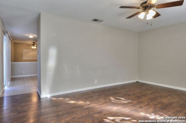 This charming one-story home in the sought-after Hunters Chase Subdivision offers a perfect balance of comfort and functionality with its open floor plan and inviting spaces. The living room welcomes you with porcelain flooring and a ceiling fan, while the kitchen boasts matching porcelain tile, updated cabinetry, granite countertops, and a spacious walk-in pantry/laundry room for added convenience. A cozy family room creates the ideal spot for relaxing evenings or family gatherings. The master suite features a generous walk-in closet, single vanity, and a large walk-in shower, while secondary bedrooms provide plenty of space for family or guests. Outside, the private backyard offers a patio slab, storage shed, and privacy fencing-perfect for weekend barbecues or quiet nights under the stars. Ideally located near major highways, UTSA, USAA, Fiesta Texas, shopping, and dining, this home delivers a welcoming retreat with easy access to everything you need.