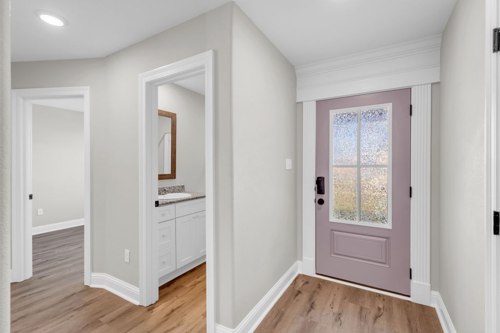 Enjoy a bright living area that flows seamlessly into the kitchen featuring white shaker soft-close cabinets, granite countertops, and stainless steel GE appliances. The home includes luxury vinyl plank flooring throughout (no carpet!), 2” faux wood blinds, and elegant design details like bullnose corners and custom exterior door casings.