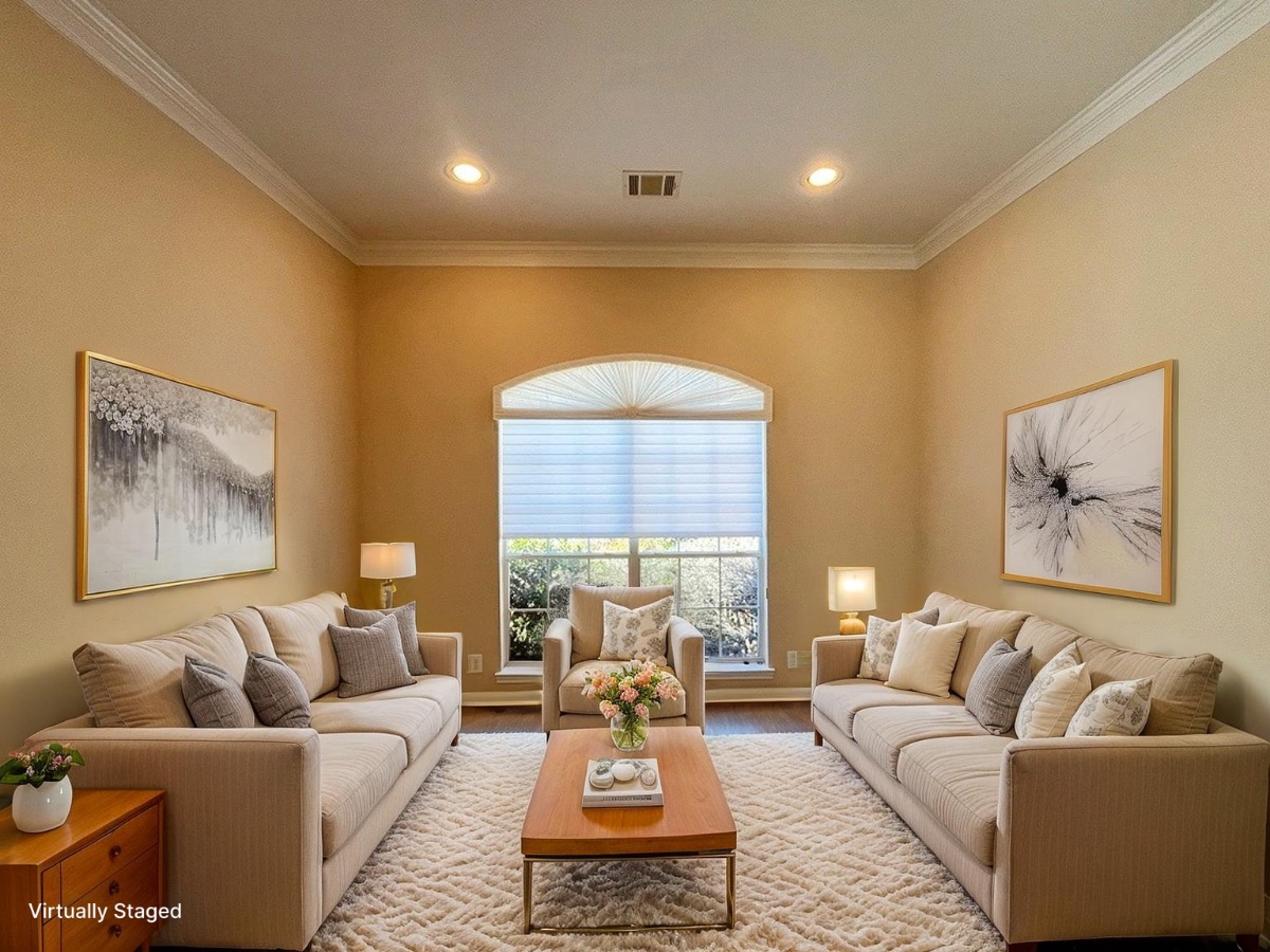 Welcome to this beautifully maintained 3-bedroom, 2-bath home tucked away on a quiet community, offering comfort, space, and an easygoing lifestyle. Inside, you’ll find ceramic tile and vinyl flooring throughout, high ceilings, and an open floor plan filled with natural light from striking floor-to-ceiling windows. Two living areas and two dining spaces provide flexibility for relaxing or entertaining, while thoughtful features like window shutters, a fireplace, alarm system, carbon monoxide detector, and programmable HVAC add everyday peace of mind.