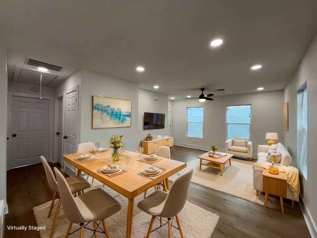 Welcome to this inviting 3-bedroom, 2-bath home designed for comfort and easy living. The open floor plan features durable vinyl flooring and a seamless living/dining room combo perfect for everyday living and entertaining. The kitchen is a standout with a gas stove, island, and solid countertops, offering both style and functionality. Modern comforts include a programmable thermostat, HVAC system, ceiling fans, and a carbon monoxide detector for added peace of mind.