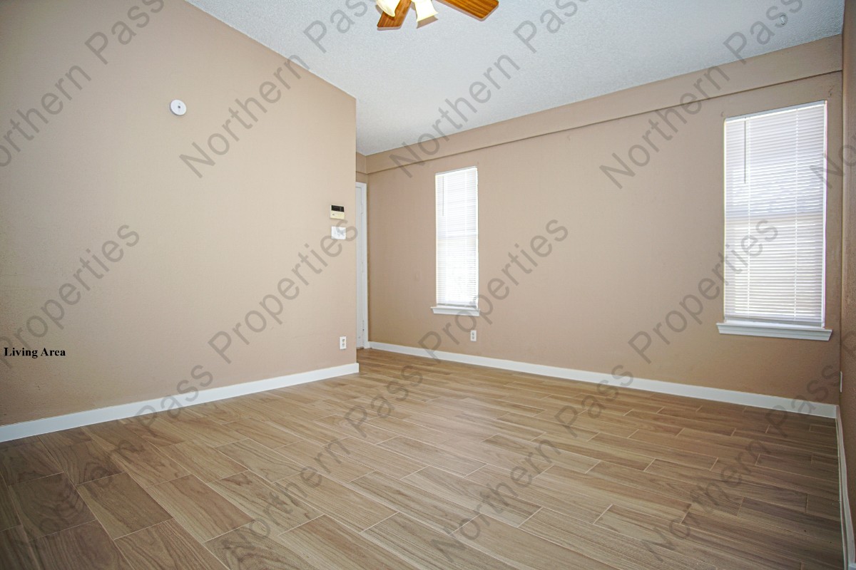 Welcome to this spacious and thoughtfully designed 3-bedroom, 2-bathroom home, ideal for comfortable everyday living. Step into the open-concept living and dining areas, where natural light flows effortlessly throughout the space, creating an inviting atmosphere for relaxing or entertaining. The kitchen offers ample cabinet storage and modern finishes—perfect for preparing meals with ease. The primary suite serves as a peaceful retreat with its own private bathroom, while the additional bedrooms provide extra space for guests or family living. Enjoy the practicality of laundry hookups and the convenience of an attached garage for parking or additional storage. Stay cool year-round with REFRIGERATED AC and take advantage of the private backyard—great for outdoor activities or simply unwinding. This home blends functionality, comfort, and modern amenities, making it a fantastic choice for your next move!