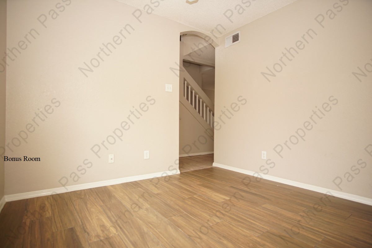 Welcome to this lovely 3-bedroom, 2-bath eastside home close to Saul Kleinfeld. Abundant natural light fills the open floor plan, with a bonus room off the foyer and stainless steel appliances complementing the kitchen. Down the hall is the laundry area with a washer and dryer and the primary suite. Upstairs is a fireside loft, two bedrooms, and a shared bath. Enjoy REFRIGERATED AC and a pergola in the landscaped backyard.