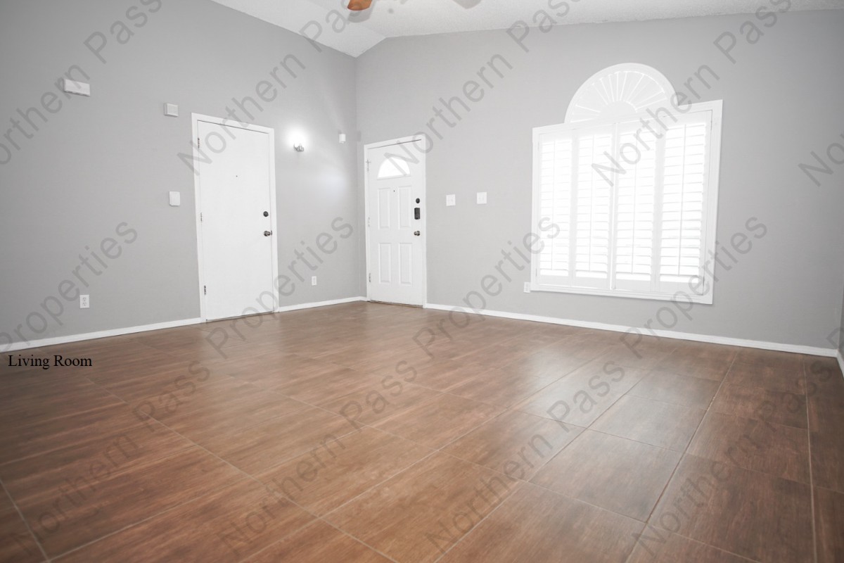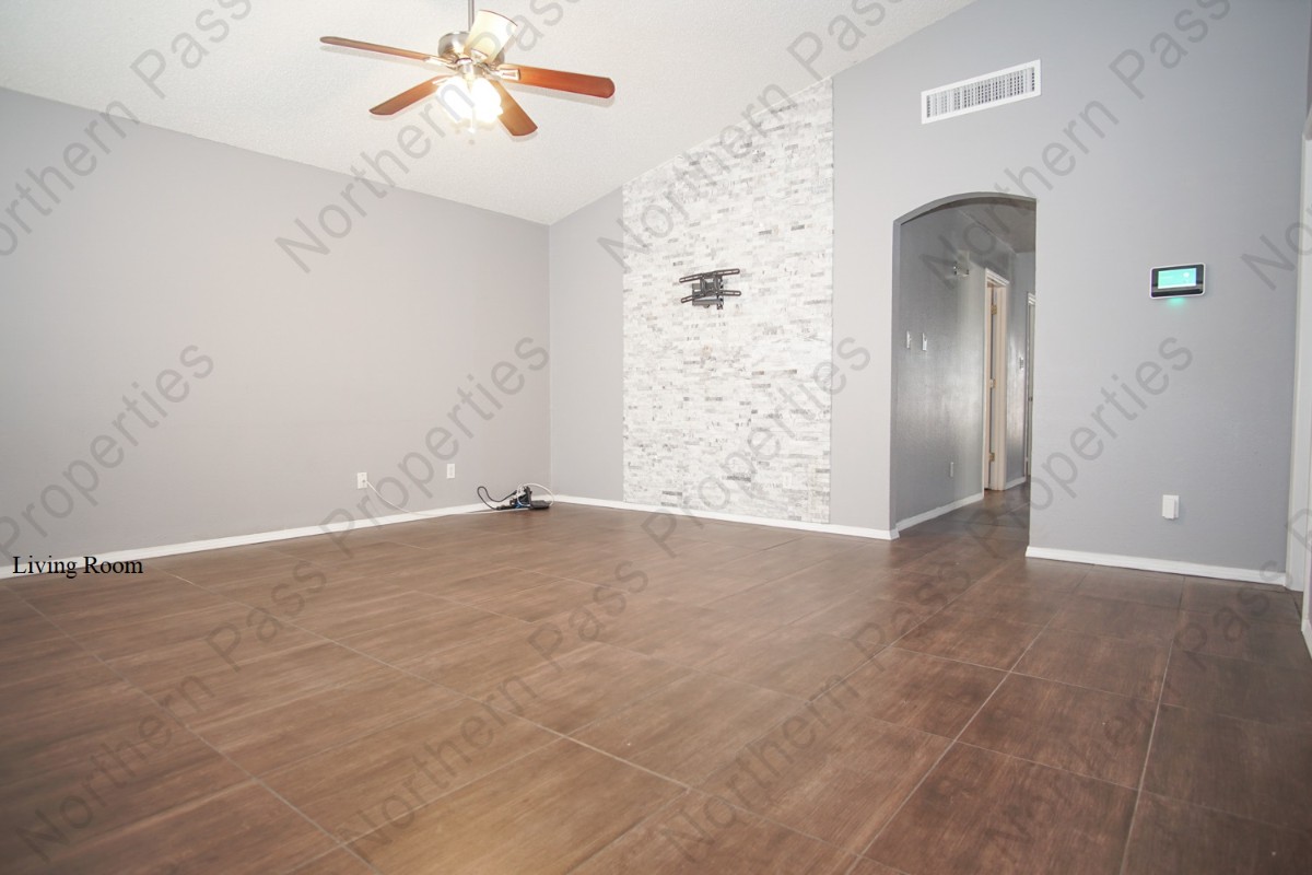 Located near Rc Poe Rd and Joe Battle Blvd, this 3-bedroom 2-bath home features REFRIGERATED AC and a low-maintenance front yard with a beautiful stone accent wall in the living room. Two bedrooms and a shared guest bath are down the hall, leading to the fully equipped kitchen and open dining area. Enjoy a private en-suite and walk-in closet in the primary suite, a full-size washer and dryer in the garage, and a covered patio in the hardscaped backyard.