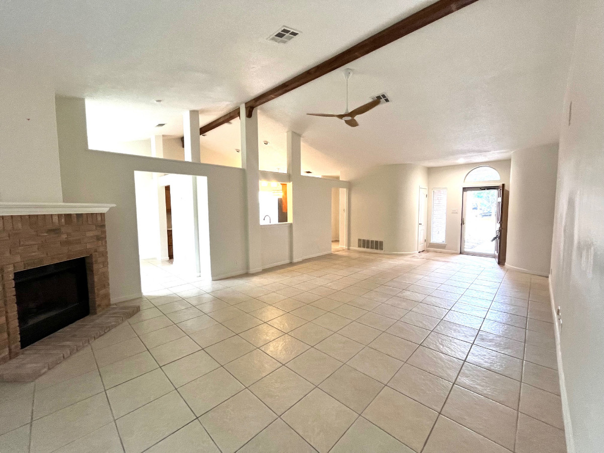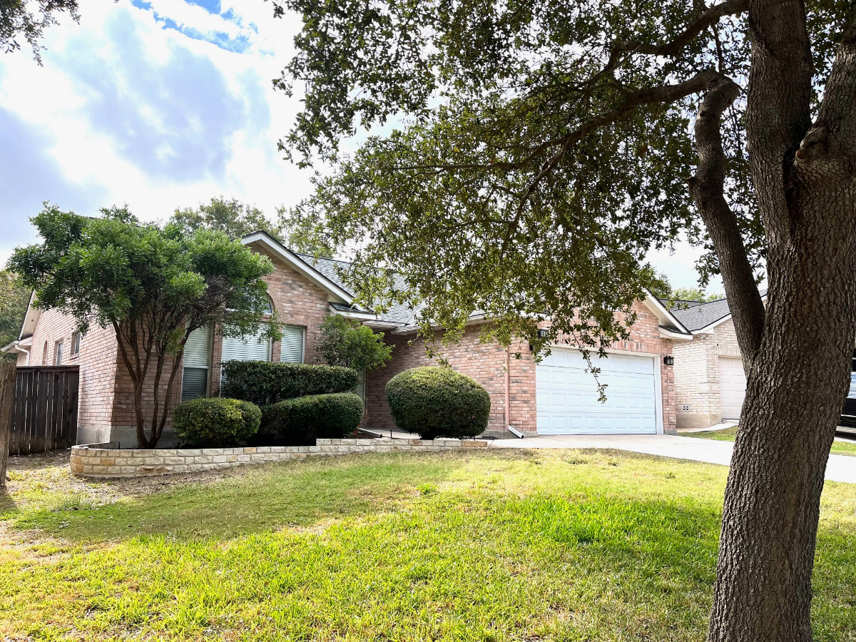 No carpet! Beautifully updated single story home centrally located in North San Antonio! This home features 3 bedrooms (split style floorplan for added privacy), single living room with gas starter fireplace, high beam ceilings, eat-in kitchen with separate dining and enclosed sunroom for enjoying morning coffee or added play area for kiddos! Mature trees all around and patio perfect for grilling! Fresh paint and new laminate flooring! Refrigerator/Washer/Dryer are there to use, however are not warranted should they break & will not be repaired. No pets firm.