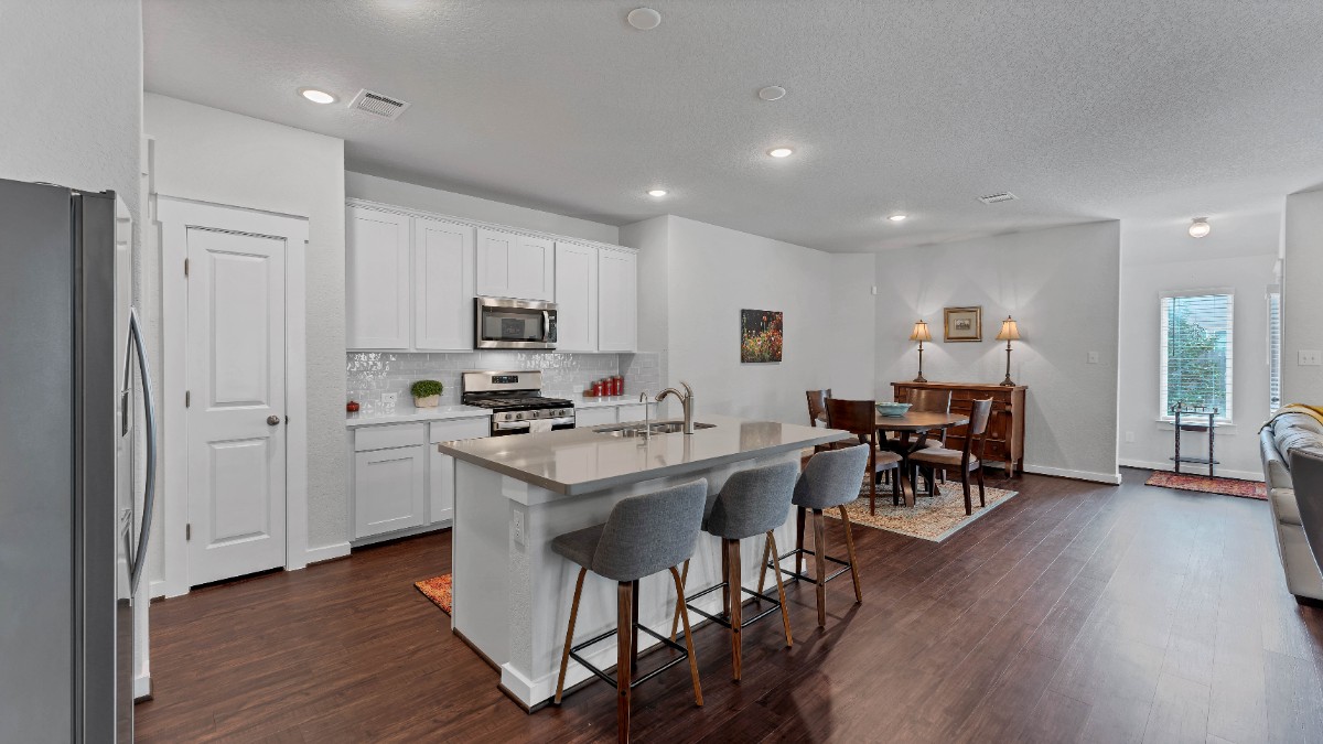 EXQUISITE HOME, DESIGNED WITH MODERN LIVING. PROPERTY BOATS AN EXPANSIVE OPEN FLOOR PLAN WITH A BREATHTAKING KITCHEN WITH QUARTZ COUNTERTOPS, DUAL DINING AREAS AND A CENTRAL ISLAND. GAS FIREPLACE, CANNED LIGHTING, ELEGANT WOOD-COLORED LUXURY VINYL PLANK. INCLUDES A SPRINKLER SYSTEM, WATER SOFTENER, R/O SYSTEM AND GARAGE DOOR OPENER WITH REMOTES. NEW ELEMENTARY SCHOOL AND HIGH SCHOOL! ZIPP FAMILY PARK IS JUST A BLOCK AWAY!