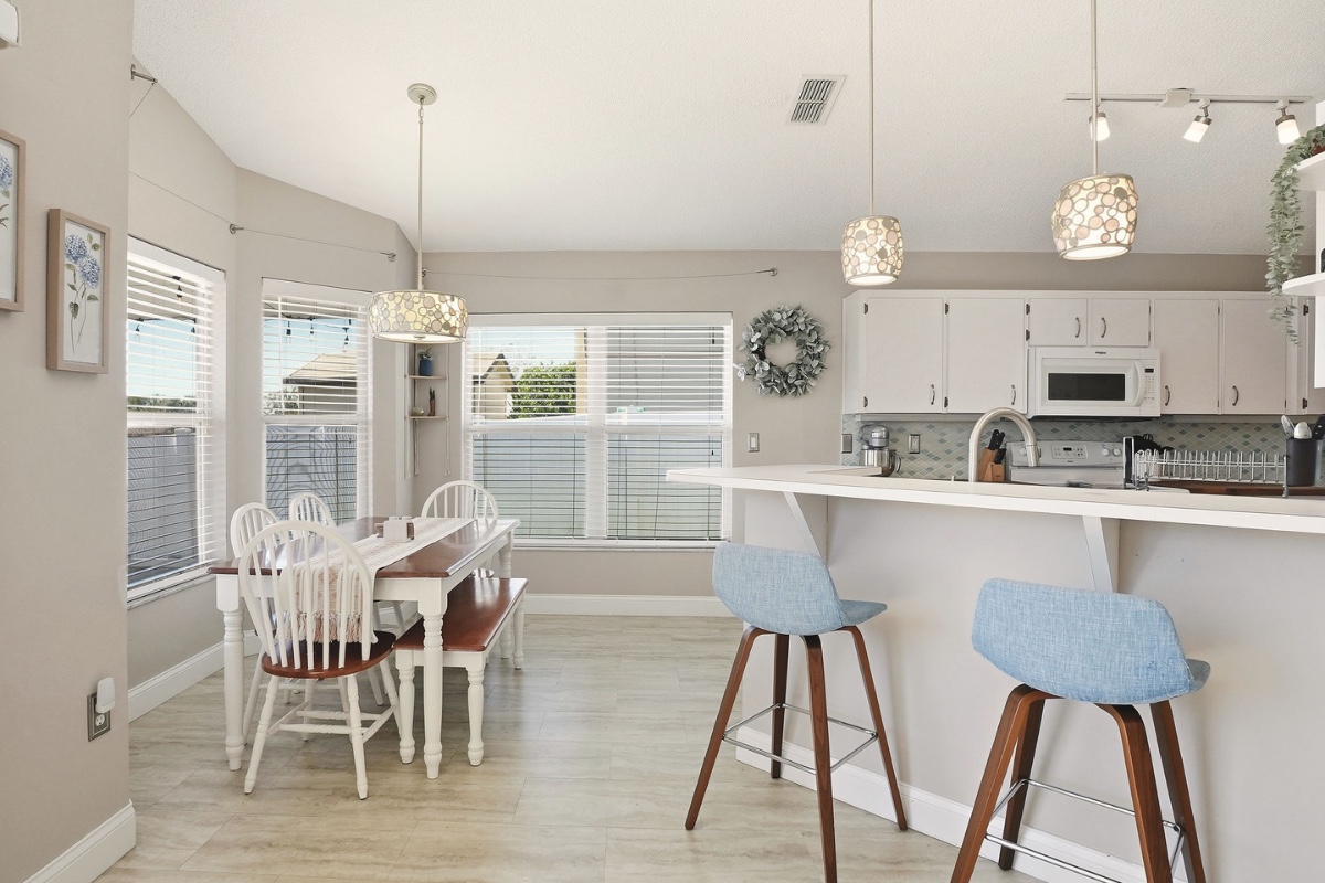 Perfectly poised in South Lakeland you will find this super sweet single family dwelling in the established community of Emerald Cove, steps away from S Florida Avenue and Cleveland Heights, up from the shores of Scott Lake. This split floor plan home has been thoughtfully updated and is awaiting its new owner! Upon arrival, you will note the adequate driveway and the immediate curb appeal with mature vegetation. Enter into a delightful room with soaring ceilings, a great room with natural light that filters through the picturesque sliding glass doors that frame the back yard view. The heart of this home is the kitchen, delightfully updated with cheerful backsplash, butcher block countertops, and white appliances for a seamless look. Additional features include the pantry and breakfast bar, updated pendant lights that compliment the space. The dining area overlooks the back yard and is surrounded by windows. Enter the Owners Suite for a private retreat! The spacious room with en suite also has tons of natural light, filtering in through the transom window above the sliders that lead to the beautiful screened lanai. The ensuite with dual sinks, soaking tub AND shower complement the large walk in closet with custom organization in place. Additional bedrooms are situated strategically for functionality making the split floor plan desirable. Venture out onto the covered lanai and enjoy the south with serenity. The screened room with tiled floors provides the perfect space to reflect at the end of the day as you enjoy the sunsets without pests in your private, fenced back yard. Roof and HVAC approximately 4 years old. Call for your showing today!