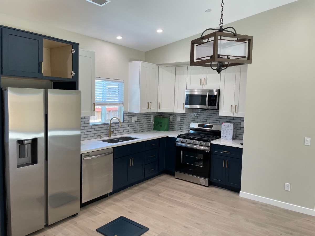 The home includes in-unit laundry with a stackable washer/dryer in a dedicated closet. Finishes are modern and well done, with luxury vinyl plank flooring throughout, high ceilings, designer tile, and dual-pane windows. The bathrooms feature real tile finishes, not inserts. Everything in the home was new in 2023 and remains in excellent condition.