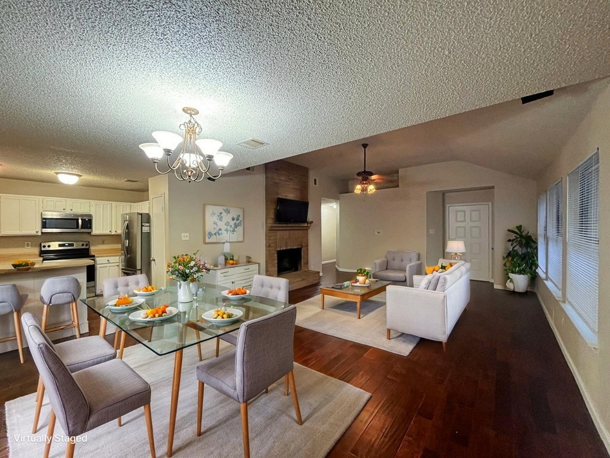 Welcome to this inviting 3-bed, 2-bath home that blends comfort, style, and everyday ease. Step inside to a bright, open living/dining room combo accented by high ceilings, a cozy fireplace, and durable ceramic tile flooring throughout. A carbon monoxide detector and programmable-thermostat HVAC add peace of mind and year-round comfort.