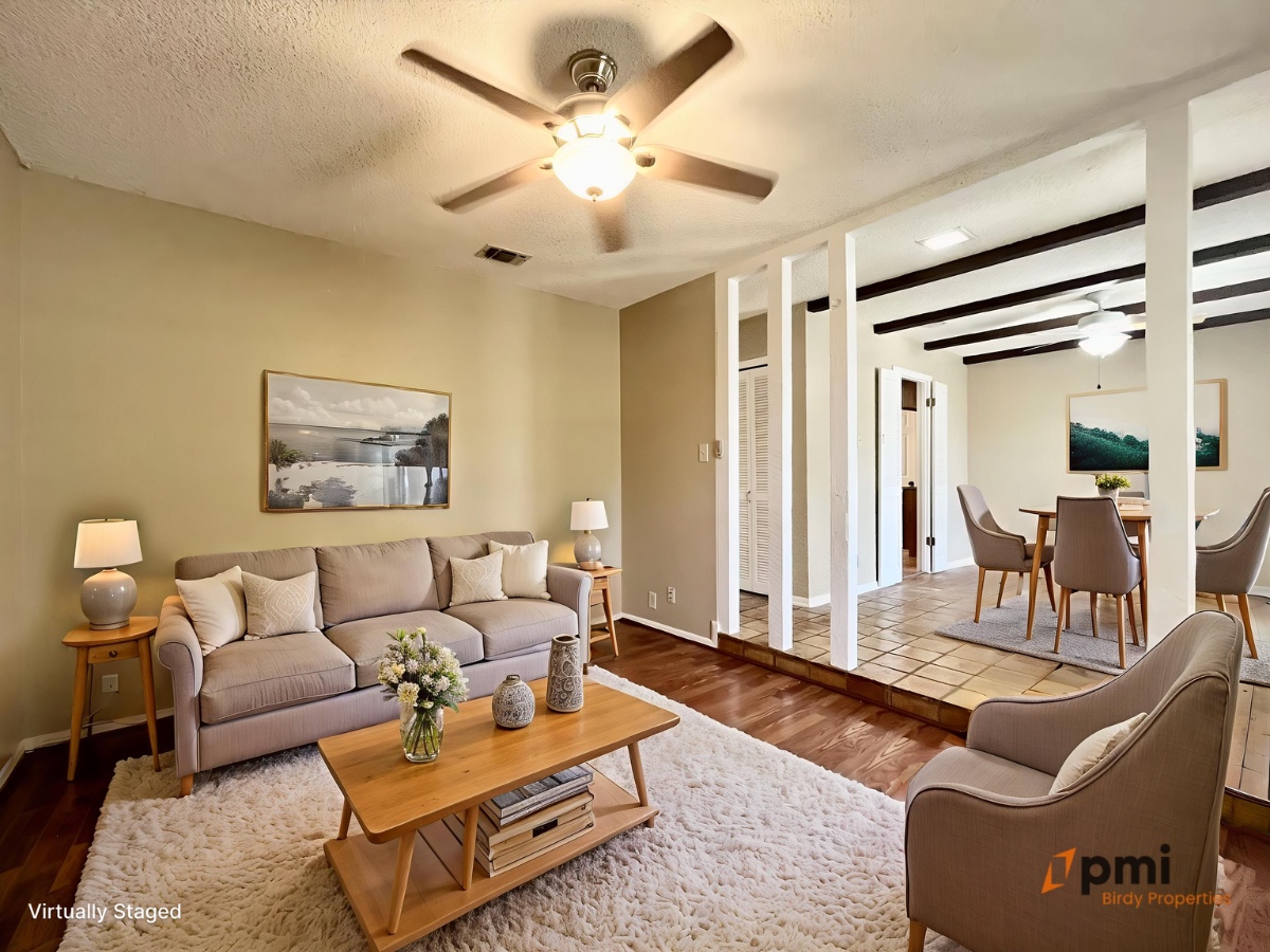 Step into this inviting 3-bed, 2-bath home that blends comfort with effortless style. Inside, you’ll find a warm mix of ceramic tile, laminate and classic Saltillo flooring, along with two spacious living areas and two dining spaces, perfect for spreading out, relaxing, or entertaining. High ceilings and a cozy fireplace add a welcoming touch, while the HVAC system with a programmable thermostat keeps the home comfortable year-round.