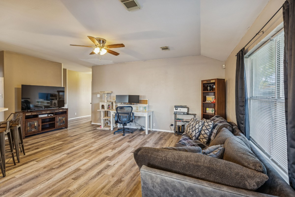 This move-in ready 3 bedroom, 2 bath one-story home is the perfect fit for buyers looking for value, convenience, and low monthly utility costs. Recent improvements include fresh interior paint, a newer HVAC system, a newer water heater, and solar panels that help keep energy bills down-ideal for first-time buyers, military families, or anyone wanting a budget-friendly home in a growing area. Inside, the bright living area offers flexible space for relaxing or working from home, while the dining room connects easily to the kitchen for everyday living. The split layout provides a private primary suite, with two secondary bedrooms that work well for kids, guests, or an office setup. The large backyard has plenty of room for pets, play, or weekend gatherings, and there are no rear neighbors, adding an extra sense of privacy. Located in Converse with quick access to Randolph AFB, Loop 1604, I-10, schools, shopping, and dining-this home checks the boxes for comfort, affordability, and location.