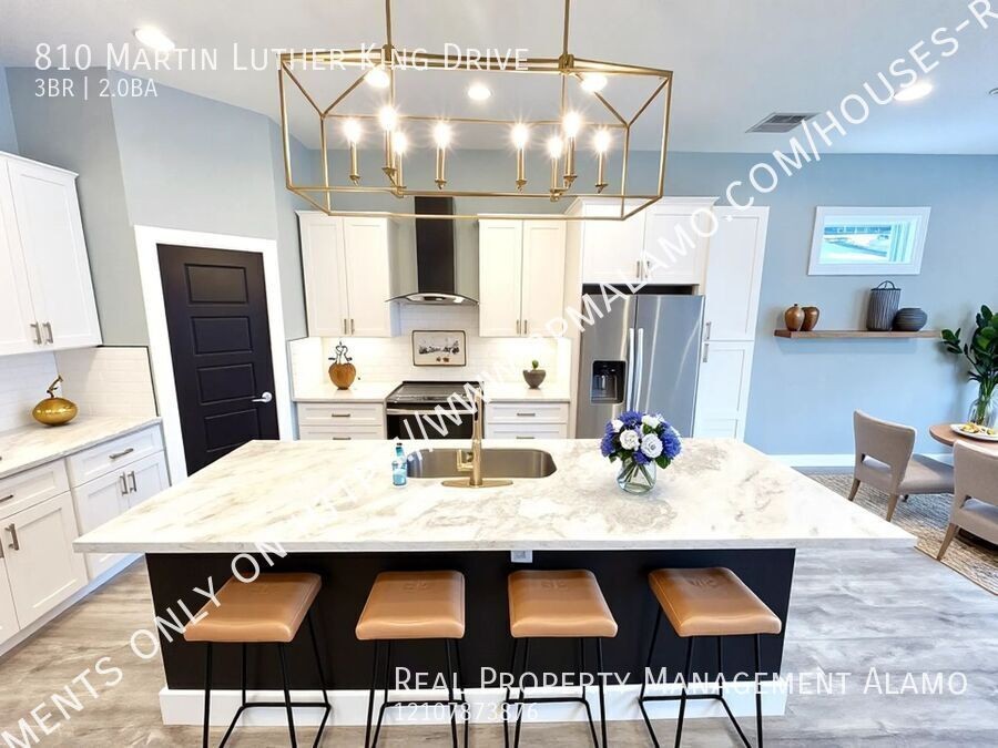 Welcome to 810 Martin Luther King Drive, a newly built, two-story residence nestled in the vibrant heart of San Antonio, TX. This stunning home, located just moments from the bustling downtown area, offers a great blend of modern amenities and convenient city living. This property features three beautifully appointed bedrooms and 2.5 bathrooms. The primary bedroom is a luxurious retreat, complete with a private balcony for enjoying mornings or relaxing evenings. It also boasts a spacious walk-in closet and an en-suite bathroom equipped with a double vanity. The open kitchen features a large island that serves as the great spot for casual dining. The kitchen is outfitted with stainless steel appliances, including a refrigerator, stove/oven, dishwasher, and microwave, all complemented by a large pantry for all your storage needs. Throughout the home, ceiling fans and central air and heat ensure your comfort no matter the season. The living spaces are designed to maximize both style and efficiency, including a stackable washer/dryer that adds convenience to your daily routine. Outside, the covered back porch provides a serene setting for outdoor dining or simply relaxing in the shade, overlooking a fenced backyard. The yard also includes a storage shed, great for gardening tools or extra storage. Additional features include a garage! Don't miss out on this fantastic opportunity! For more information, e-mail us at Lease@rpmalamo.com Thank you!