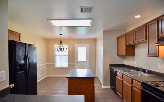The kitchen is warm and welcoming, complete with an island, breakfast bar, pantry, eat-in dining area, electric stove, dishwasher and refrigerator everything you need for everyday living or relaxed entertaining. A conveniently located laundry closet offers washer and dryer hookups.