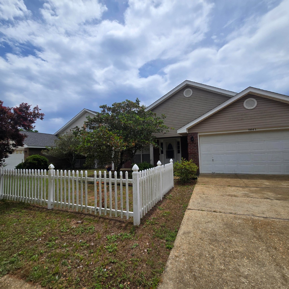 Welcome to this inviting 3-bedroom, 2-bathroom home nestled in a quiet Navarre neighborhood. The property features a welcoming white picket fence, a large fenced backyard, and plenty of space for outdoor living.