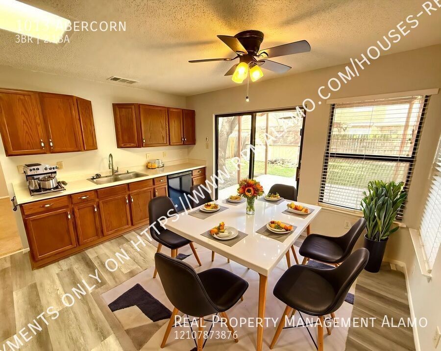This inviting property offers a spacious layout with modern conveniences and cozy touches throughout. The living area features a warm fireplace, great for relaxing evenings. A large pantry and well-equipped kitchen with a refrigerator, stove/oven, and dishwasher make meal prep effortless. Ceiling fans and central air/heat provide year-round comfort. Step outside to a covered back porch overlooking the fenced backyard, ideal for outdoor gatherings. A storage shed offers extra space for tools or hobbies. Washer/dryer connections and a two-car garage add to the home's convenience. Located in a desirable area, this home blends comfort, functionality, and a great location. Don’t miss this opportunity! For more information, e-mail us at Lease@rpmalamo.com Thank you!