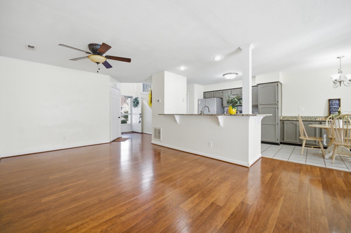 Welcome home to this beautifully updated two-story townhome in the sought-after Burnt Bridge Run community! Featuring a garage and two-car driveway, this spacious home offers an inviting open floor plan perfect for everyday living and entertaining. The updated eat-in kitchen showcases granite countertops and flows seamlessly into the living and dining areas, highlighted by a cozy gas fireplace.
