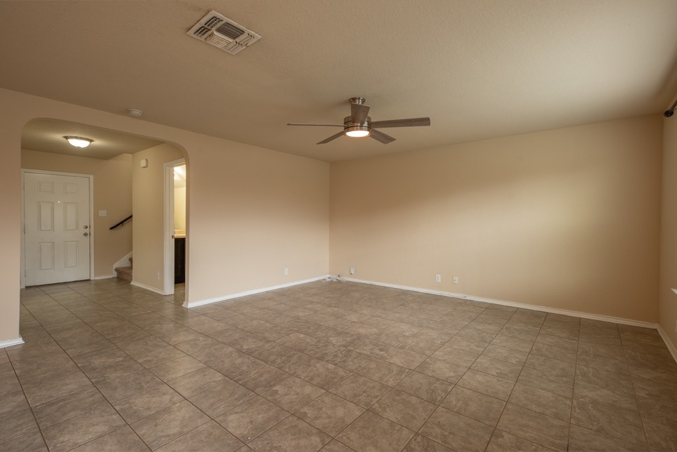 Welcome to 6114 Hackberry Pond, a beautifully maintained 3-bedroom, 2.5-bath home boasting over 2,000 sq ft of stylish living space. From the charming brick exterior with unique diamond design to the inviting arched entry, this home offers exceptional curb appeal and a warm welcome. Step inside to freshly painted interiors, upgraded LED lighting, and a bright, open-concept layout. The living and dining area is filled with natural light, featuring a modern nickel-finished chandelier. The gourmet kitchen is a chef's dream with granite countertops, tiled backsplash, recessed lighting, ample cabinetry, black appliances, and a walk-in pantry. Upstairs, a massive loft offers flexible space for a media room, playroom, or home office. The spacious master retreat includes a walk-in closet and a luxurious en-suite bath with a floor-to-ceiling tiled shower, soaking tub, dual vanities, and chrome fixtures. Two generously sized bedrooms feature wide closets, and share a full bathroom with a tiled tub and nickel fixtures. Enjoy the outdoors in the large backyard with a covered patio, perfect for entertaining or relaxing evenings. Don't miss out on this beautiful home - schedule your showing today!