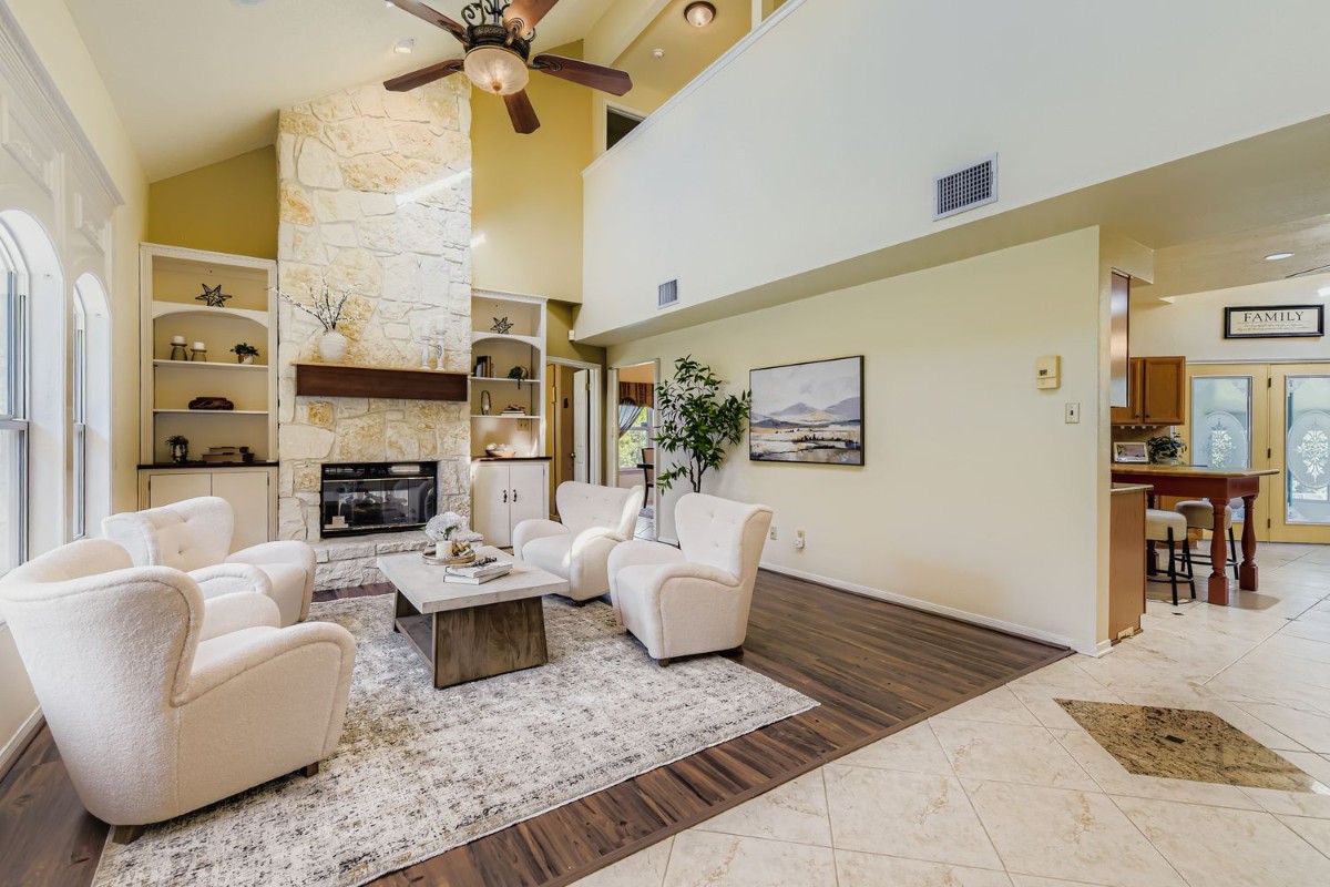 Welcome to 6606 Laurel Hill, a one-of-a-kind property in the desirable Oak Hills area near the Medical Center. Situated on just over half an acre with mature trees, this home also offers fabulous views of downtown San Antonio and Fort Sam fireworks. Inside you'll find fresh carpet, an indoor swimming pool with heater and indoor controls for year-round enjoyment, a double-sided fireplace, skylights, and two surround sound areas. The home is equipped with a central vacuum system, water softener with reverse osmosis, intercom, security, and home automation system. The primary suite includes an ensuite with a morning kitchen and undercounter refrigerator. A three-car garage with overhead storage, driveway security gate, durable metal roof, Don Young double-paned windows, and dual central air units with heat pumps complete this exceptional property.