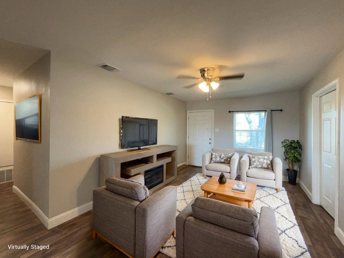Welcome to this beautifully maintained 3-bedroom, 2.5-bath home that blends comfort, style, and everyday convenience. Step inside to warm wood flooring and an inviting open floor plan designed for both relaxing and entertaining. The spacious living and dining room combination offers flexibility in how you arrange your space, while the decorative fireplace adds charm and character. The HVAC system with a programmable thermostat ensures year-round comfort tailored to your schedule.
