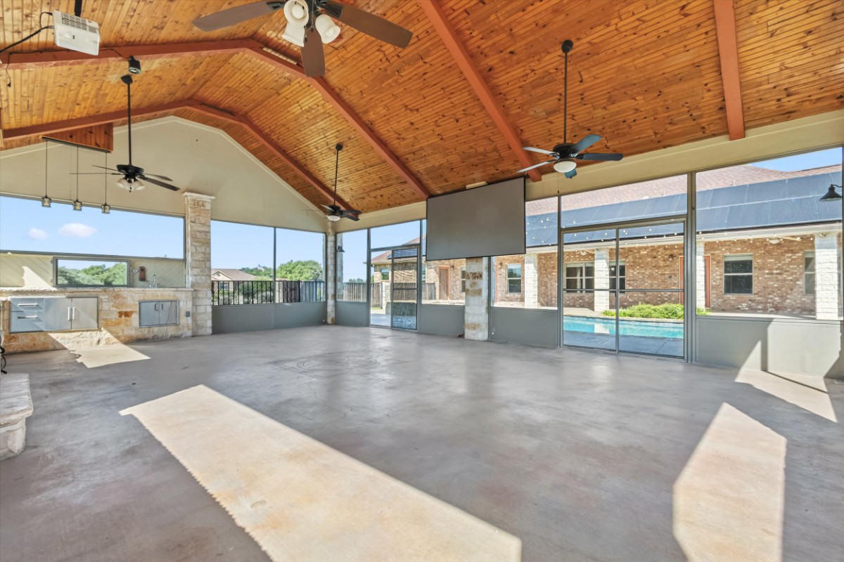 This property shines with its unmatched amenities. Enjoy a 6-ft deep outdoor heated saltwater pool with connected hot tub; complete with a pool house featuring a full 3 piece bath—perfect for year-round enjoyment. Outdoor living is equally impressive with an extra large screened-in deck that includes an outdoor fireplace, projector with screen, outdoor kitchen, and plenty of space for entertaining. Additional highlights include an open back patio, fenced in yard, large fire pit, half basketball and regulation size pickleball courts.