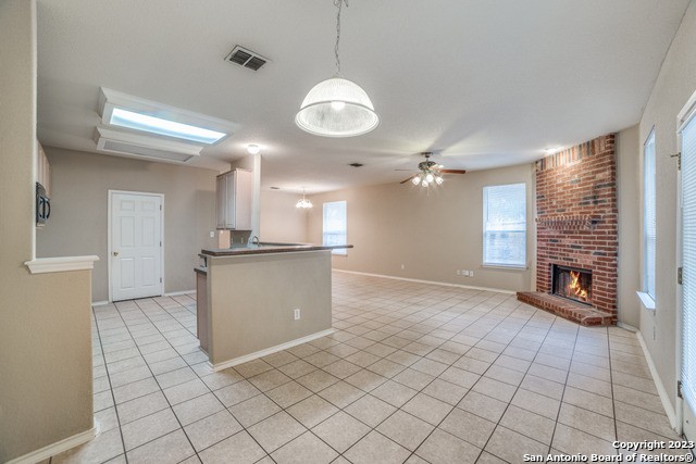 Discover this inviting single-story home in the desirable Wildhorse community, offering 4 bedrooms, 2 bathrooms, and a spacious 3-car garage. Featuring an open floor plan with high ceilings, a comfortable living area with a cozy fireplace, and a bright kitchen with a breakfast bar, this home is designed for both everyday living and entertaining. Step outside to enjoy the large covered patio and corner lot with mature trees and a privacy fence. Community amenities include a pool, clubhouse, playground, and picnic areas. Conveniently located near HEB Plus, Walmart, Target, Santikos Casa Blanca, and Cedar Creek Golf Course, with easy access to Loop 1604 and Braun Road, this property places shopping, dining, and entertainment right at your doorstep while offering a quick commute across San Antonio.