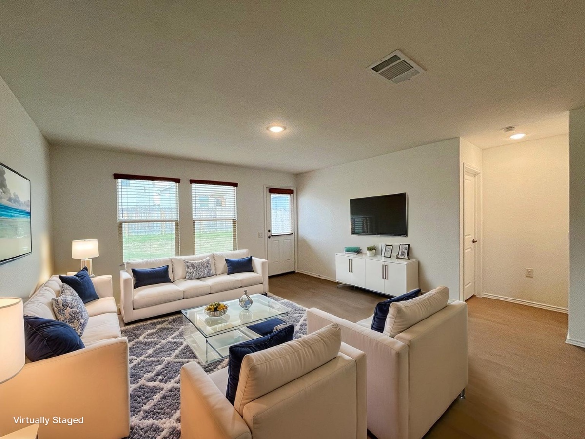 The primary suite provides a peaceful retreat with a walk-in closet and a private ensuite bath complete with a single vanity and tub/shower combination. Three additional bedrooms offer flexibility for guests, a home office, or creative space. A convenient laundry closet with washer and dryer included makes daily routines effortless. Step outside to enjoy a fully fenced backyard with a privacy fence, ideal for outdoor gatherings or simply unwinding in your own quiet space. A two-car garage adds extra storage and convenience.