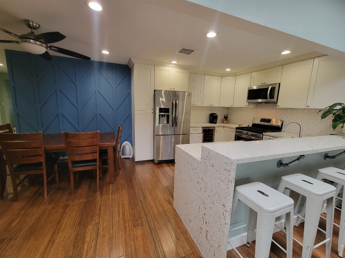 Dining with Style: A custom dining accent wall adds character and warmth for family dinners or hosting fellow service members.