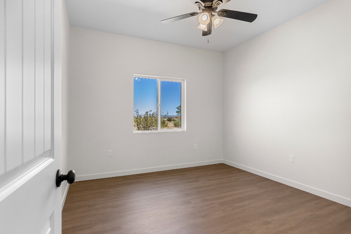 Your dream home awaits, offering Breathtaking Views of California City!* Newly Built in 2025, Custom Construction located in the Rancho Estates on 2.5 Acres, in California City Features 1507 sq. ft., 4 Bedrooms & 2 Baths. As you arrive at your elegant wrought iron front door, you're welcomed by a grand entry showcasing a stunning full decorative stone wall, adding timeless charm and sophistication to the space. Open Floor Plan boasts a grand entry into the main Living area, elegant open Kitchen with Quartz counter tops, tons of self-closing Cabinetry, Black Stainless Steel Appliances, and Large Island. Features include, recessed lighting, custom floor, ceiling fans, highlighted living area featuring 9' ceiling and indoor laundry room. Huge Master Suite and large walk in closet. The master bath is spacious, featuring an oversized walk-in tiled surround shower, dual sinks, and ample cabinetry. Hall full bath is complete with Quartz countertops, tile flooring & tile surround tub/shower. Energy Efficient home with R-60 insulation in ceilings and R21 in walls. Two- 21.5 seer HVAC Systems and solar. This beautifully located home sits in the heart of California City, just minutes from Highway 58 and Edwards Air Force Base! Call to schedule a showing 760-338-8928