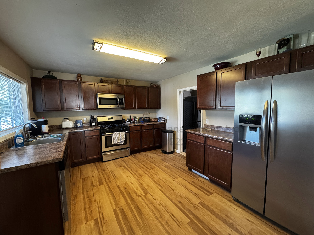 Welcome to this beautiful 4 bedroom house that combines comfort, functionality, and charm. As you enter you are greeted by a formal sitting room and dining area, perfect for hosting gatherings or enjoying quiet evenings. Continue on to the cozy living room, an ideal space for movie nights or entertaining guests, which flows seamlessly into the kitchen. The kitchen features stainless steel appliances, brand-new flooring, and plenty of cabinet space for all your cooking needs. Rounding out the main level are a convenient laundry room and a full bathroom. Heading upstairs, you will find all four generously sized bedrooms along with a second full bathroom. Step out from the laundry room to the fully fenced in backyard retreat. From the laundry room, step outside to a fully fenced backyard retreat offering both space and versatility. Enjoy the large, newer deck for outdoor dining, the grassy yard for play, and the added storage of a carport and shed. The house is complete with a charming wrap around front porch, perfect for morning coffee, and central air conditioning for added comfort. This stunning 4 bedroom 2 bathroom house is ready to be called your home.