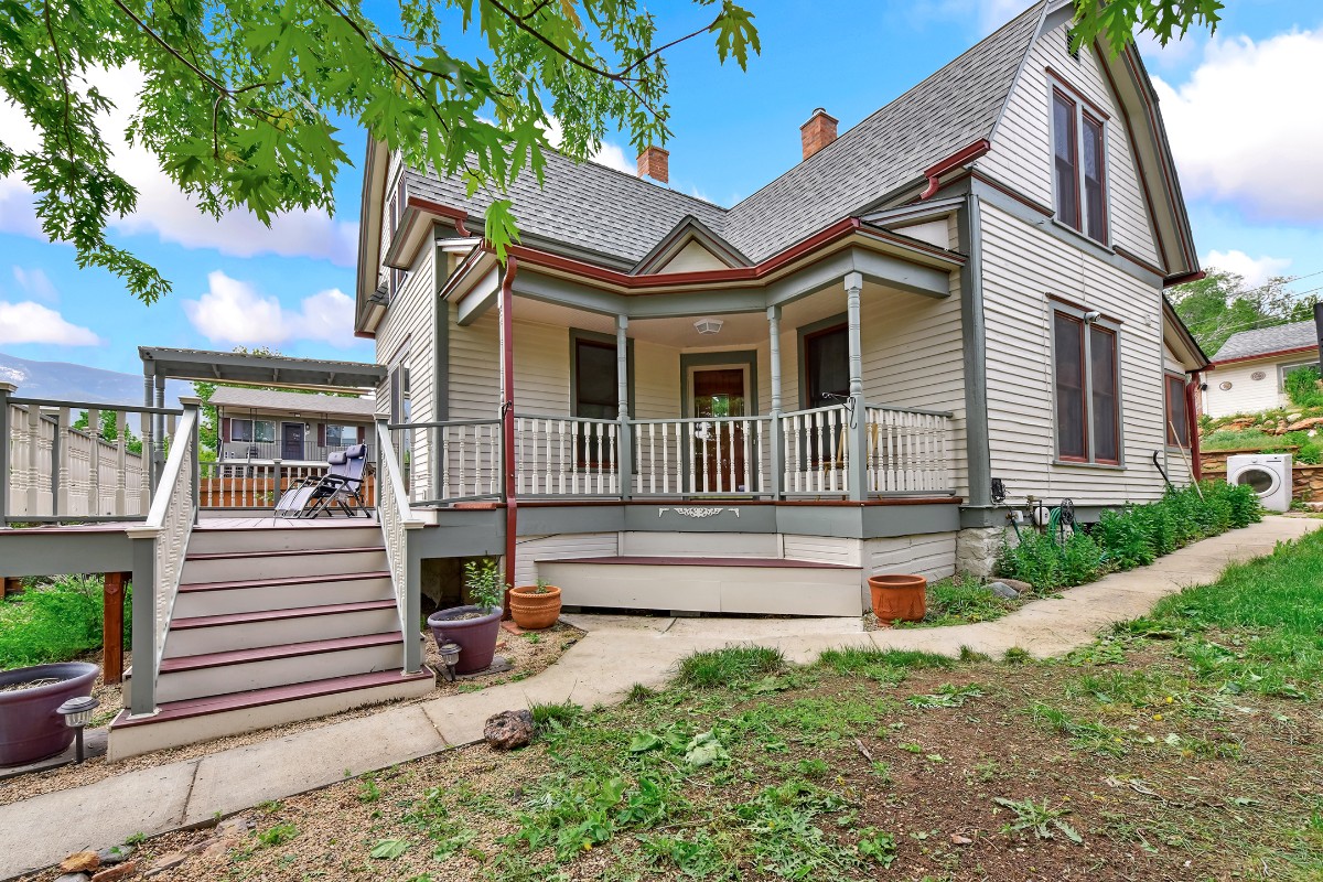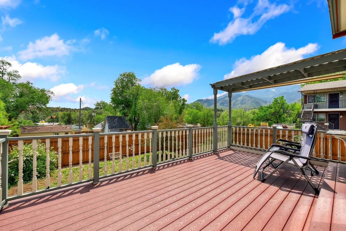 This wonderful turn-of-the-century home is located just minutes away from Old Colorado City, Manitou Springs, Red Rock Canyon, and the Garden of the Gods!!! Fenced for privacy, a beautiful front porch awaits with a serene mountain view. The interior has the charm of times past with nice updates. The main level had a family room with a walkout to the front deck. Formal dining room, kitchen with breakfast bar and pantry, and walkout to the backyard. A bedroom and a 3/4 bath are also on the main level. The windows throughout the home have been updated. Upstairs, you will find the primary bedroom, two additional bedrooms, and a full bath. The upstairs bedroom doors are adorned with stained glass windows. Tons of lot space with a pond and gazebo. This home features alley access with parking and a large workshop equipped with electricity.