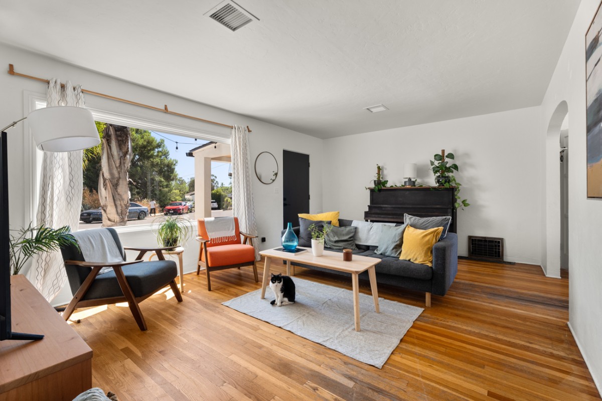 Available for 6-month, 12-month+, and longer lease, starting mid-October or November 1. Canyon-view house in central San Diego (El Cerrito neighborhood, in the College Area). Large, private lot and backyard, with stunning views, and the breathtaking sunsets overlooking the canyon. The house is tucked at the end of a quiet cul-de-sac. The upstairs has 3 bedrooms and 1 bathroom, and the downstairs is a 1-bedroom, 1 full bathroom studio unit with its own private entrance and kitchenette (4 bedrooms/2 full bathrooms total). We used the downstairs studio unit for a home office, a private space for guests, and we also rented it out from time to time. The downstairs studio is also a great retreat for teenage children or those with multi-generational living arrangements. The house has lots of natural light from the large windows in the living room, dining room, and kitchen, which overlook a beautiful backyard canyon with multiple patios. It features hardwood floors, classic archways, an updated open-concept, remodeled kitchen with stainless steel appliances, a Smart thermostat, fresh paint, and newer, energy-efficient AC and central heating. All appliances, including the HVAC, are less than 2 years old.