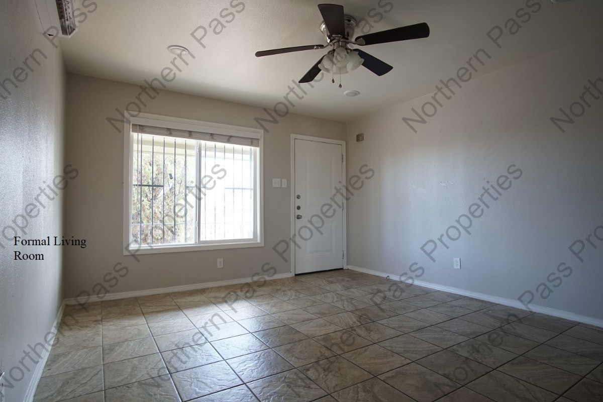 Charming 4-bedroom home in Central El Paso is now ready for immediate move-in! This home has been completely renovated, it features ceramic tile throughout, REFRIGERATED AC, faux wood blinds, and a three-car garage. The home has a formal living area and a combined den and dining area. The kitchen features stainless steel appliances and granite countertops. The primary bedroom has its own en-suite, mud room, and access to the back of the home. Let's not forget to mention that the home has a full-size washer and dryer!