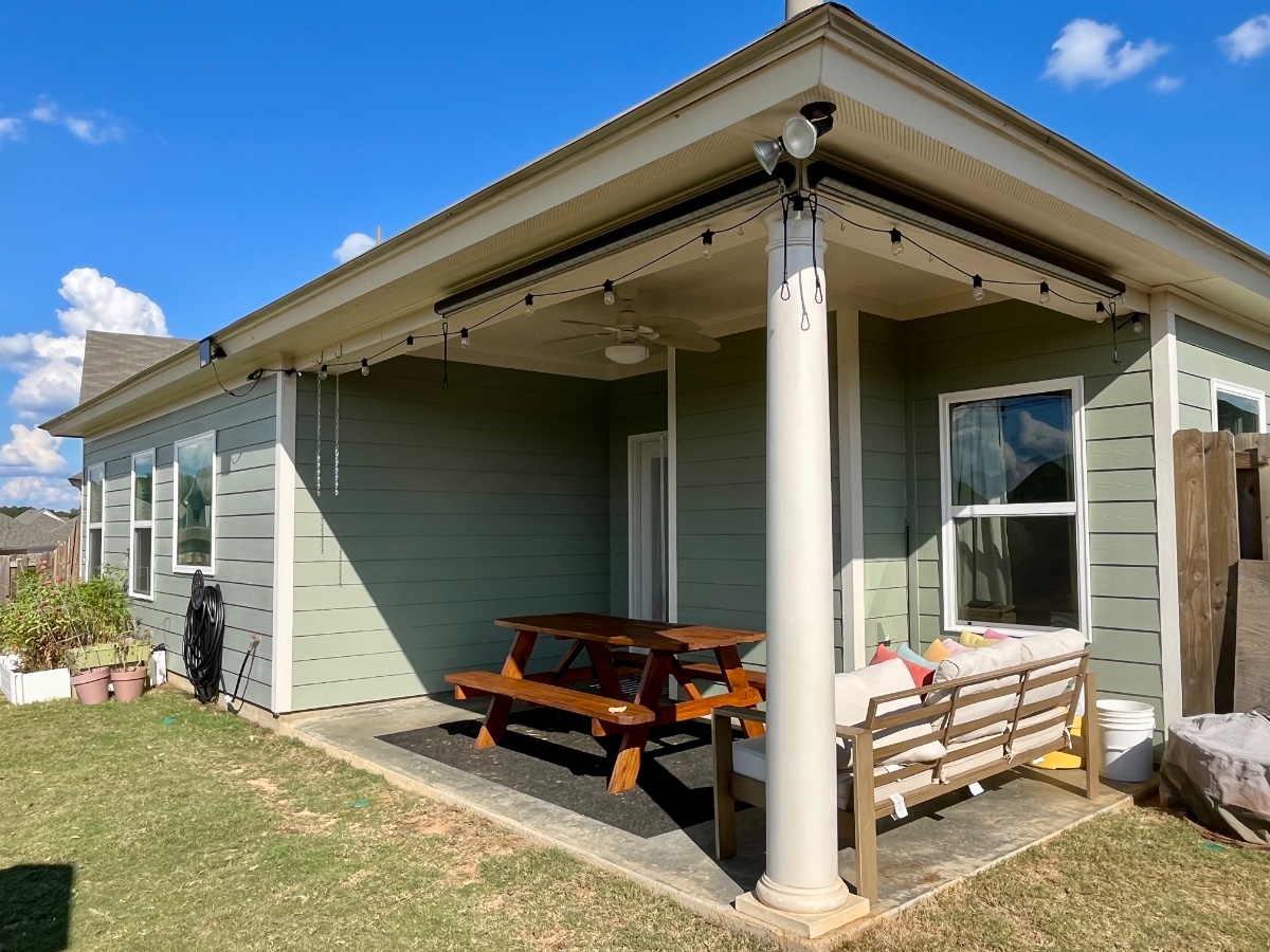 Built in 2022, this 4BR, 2BA PIVET floor plan located in Hedgefield (Prattville) is offers an open concept living space with a split bedroom set up. Enjoy the fenced back yard which includes a covered patio space. The kitchen offers SS appliances, quartz countertops, lots of storage, and a pantry. The primary suite, located in the rear, provides a large bedroom, bathroom with double vanity, soaking tub and separate shower, and walkthrough closet leading to a centrally located laundry room. Three spare bedrooms and a second full bathroom provide space of family and/or a home office.