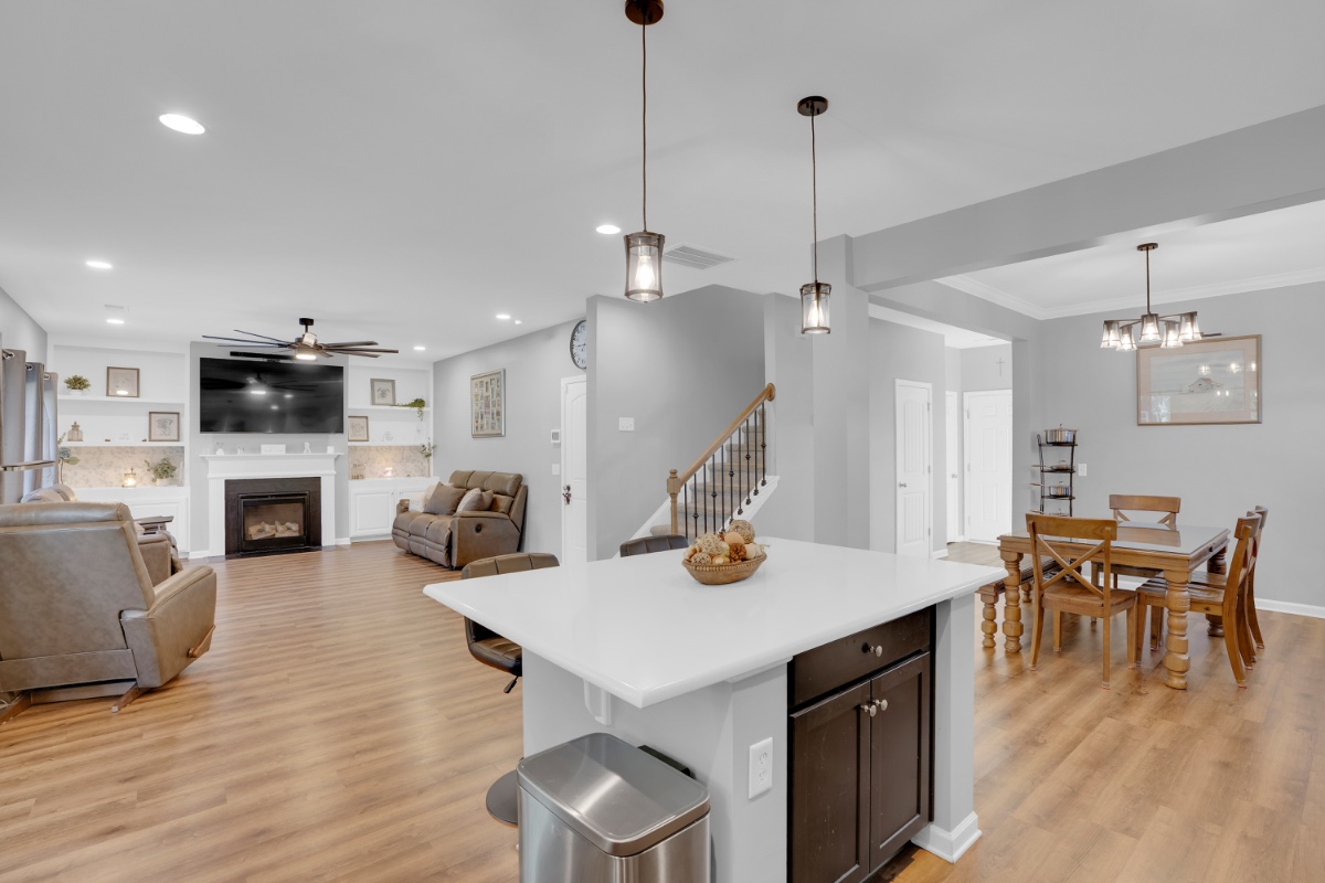 Better Than New in Friendship Hill Farms. Welcome to Friendship Hill Farms, one of Camdens most desirable communities, where Southern charm meets modern living. This sought-after neighborhood features spacious lots, two tranquil community ponds, and plans for a pool and cabana, all within a convenient 3540 minute drive to Shaw AFB and Fort Jackson. This stunning 4-bedroom, 2.5-bath home is packed with upgrades and designed for both comfort and entertaining. Step inside to an open floor plan featuring custom cabinet built-ins perfect for a breakfast bar, coffee station, or cocktail nook. Modern kitchen with quartz countertops and stainless steel appliances. The upgraded french door dual fuel range, stylish light fixtures, Bluetooth enabled speakers and private first-floor office make everyday living feel elevated. Custom Jellyfish exterior lighting system, permanent, programmable roofline lighting with endless color options for holidays, security and year-round curb appeal. Step outside to your private oasis featuring a cozy firepit, a spacious screened-in porch and a fully fenced yard that provides both privacy and peace of mind. The oversized screened porch, complete with outdoor fans and TV hookup, sets the stage for cozy fall football nights or summer gatherings. The spacious primary suite offers a true retreat with two large walk-in closets, double vanities, a soaking tub, separate shower and plenty of room to unwind, while the homes thoughtful design provides ample storage throughout. This home truly has all the bells and whistlesbetter than new construction, with upgrades already in place for you to enjoy