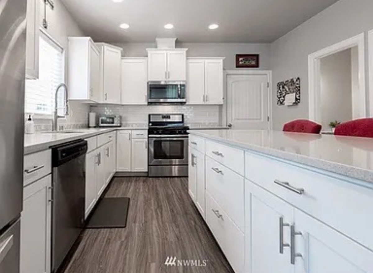 Located only 5 minutes away from NASWI & walking distance from Hillcrest Elementary School and Oak Harbor High School. It is a 7 minute drive to Safeway, Walmart and Haggen, 10 minutes to the Commissary and NEX, 15 minutes to Deception Pass State Park & 20 minutes to Coopeville, Fort Ebey State Park and Fort Casey State Park. The open floor plan downstairs is great for hosting & there is a half bath and a two car garage off the kitchen. The baby gates at the top and bottom of the stairs were installed by a general contractor and are sturdy and reliable for keeping pets and children off the stairs. The landing upstairs is perfect as a game room or a playroom. Also upstairs are four spacious bedrooms and two bathrooms. The yard has a small patio for grilling & a lawnmower is included.