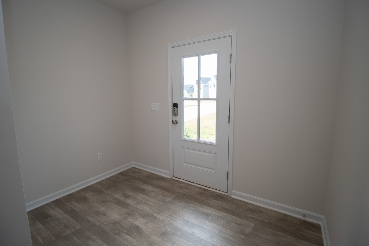 Inside, the home features an open floor plan with a pocket office and a convenient half bath on the main floor — perfect for working from home or hosting guests. The living area opens to a private backyard patio, ideal for relaxing or entertaining.