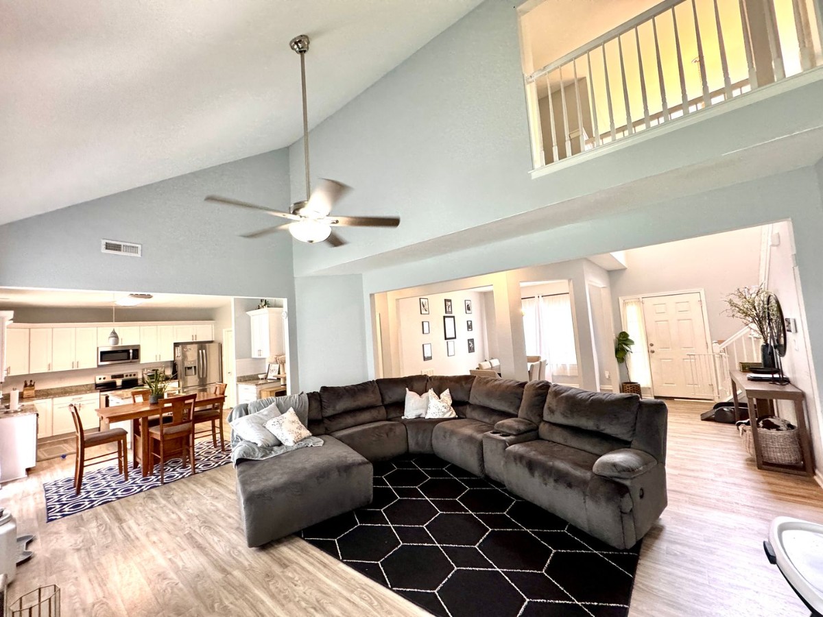 Welcome Home!! Beautifully situated in the Northern part of Suffolk, this stunning home offers an open floor plan with the kitchen and dining area seamlessly flowing into the spacious living room. The custom kitchen features granite countertops, stainless steel appliances, a generous island, and a large pantry. The living room boasts vaulted ceilings and a cozy gas fireplace. The first-floor primary suite includes a walk-in closet and a luxurious private bath with a double vanity, garden tub, separate tiled shower, and water closet. Upstairs, you’ll find three large bedrooms and a full bath. Enjoy the partially fenced yard with a patio and pergola—perfect for outdoor gatherings. Additional features include a two-car garage, a large driveway, and washer/dryer provided in “as-is” condition. Pets are negotiable with a $350 pet fee plus $50 monthly pet rent (no aggressive breeds). No smoking inside the home or garage.