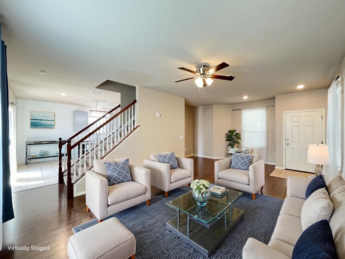 This charming 3-bedroom, 2.5-bathroom two-story home offers a blend of modern comfort and thoughtful design. The home provides a spacious and inviting atmosphere. The HVAC system with a programmable thermostat ensures year-round comfort.