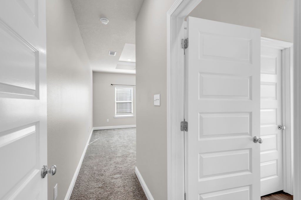 The spacious primary suite is your private retreat, featuring a luxurious bathroom and a large walk-in closet. Three additional bedrooms are located across the living area, conveniently situated near the guest bath and laundry room, which includes a linen closet and ample storage. Carpet is installed in all bedrooms, and ceiling fans in each room keep the home comfortable year-round.