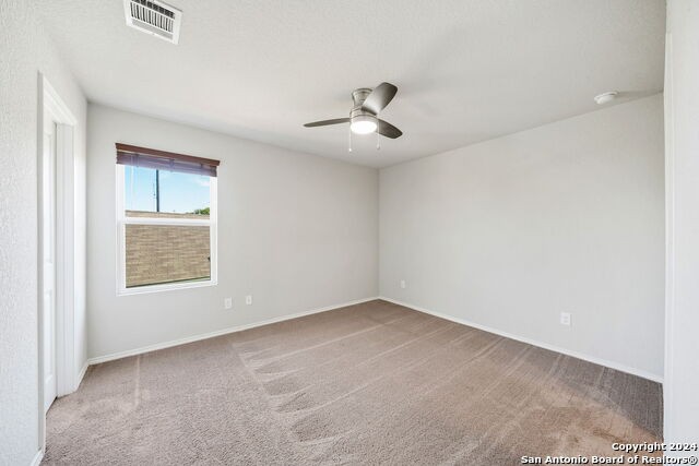 Nestled in the desirable Elm Valley Subdivision, this spacious two-story home offers a warm and inviting open floor plan, perfect for both relaxation and entertaining. The main living area flows seamlessly with wood laminate flooring, leading into a well-appointed kitchen featuring stainless steel appliances-including a gas stove and refrigerator-and solid countertops. Upstairs, the carpeted master suite includes a ceiling fan, tub/shower combo, single vanity, and a large walk-in closet. The convenience of a second-floor utility room with a full-size washer and dryer adds to the home's functionality. Step outside to enjoy an oversized backyard complete with a patio, shed, and privacy fence, ideal for gatherings or quiet evenings. Additional features include a water softener and reverse osmosis system. Located near Lackland Air Force Base, major highways, shopping, and dining, this home combines comfort with a prime location.