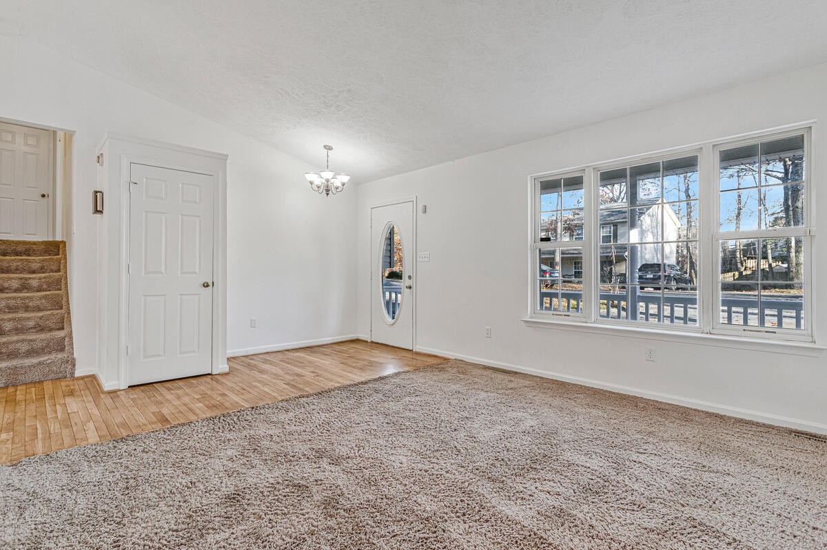 Spacious 4-bedroom, 3 full bathroom home in Chesapeake Ranch Estates. Situated on a cul-de-sac, the home offers ample parking plus a 1-car garage. Enjoy relaxing mornings on the inviting front porch or grill and unwind on the tiered rear deck overlooking the backyard. The large eat-in kitchen opens to and overlooks the family room, creating a connected, functional layout ideal for everyday living and entertaining. The upper-level primary suite features a full ensuite bathroom and a laundry chute for added convenience. Two additional bedrooms and another full bathroom complete the upper living level. The finished lower level adds excellent flexibility with a 4th bedroom and private full bathroom — perfect for guests or use as a secondary suite. Newly Installed washer & dryer convey — water-tested after installation and in excellent, unused laundry condition. Newly updated bathroom vanities elevate the home with modern style and finish. Community amenities include lake privileges, trails, playgrounds, campground access, small airport and nearby community beaches. A fantastic opportunity for buyers seeking space, privacy, and the lifestyle of this well-established waterfront-connected community. Listing is being sold "As-Is" *** Seller is offering $4,000 in closing assistance in lieu of a carpet allowance. ****