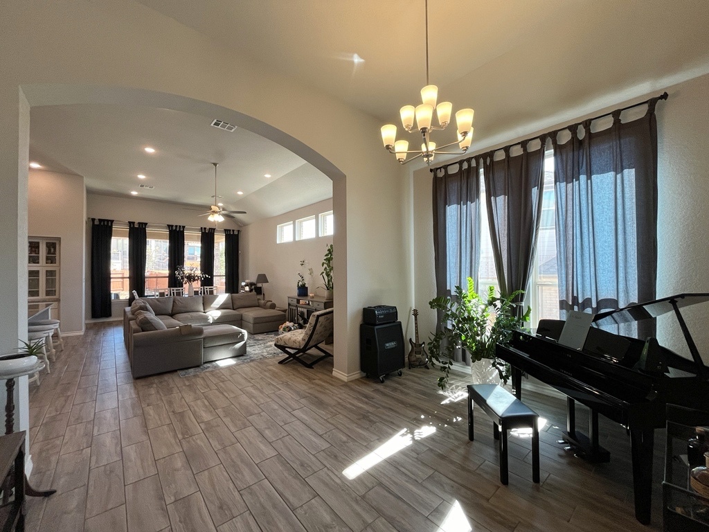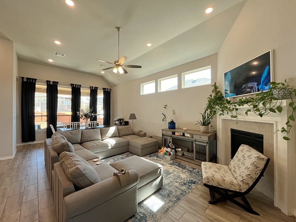 Welcome to this beautifully designed 4-bedroom, 3.5-bath home that blends comfort, style, and everyday functionality. Featuring an open floor plan with high ceilings and stunning floor-to-ceiling windows, this home is filled with natural light and a warm, welcoming feel.