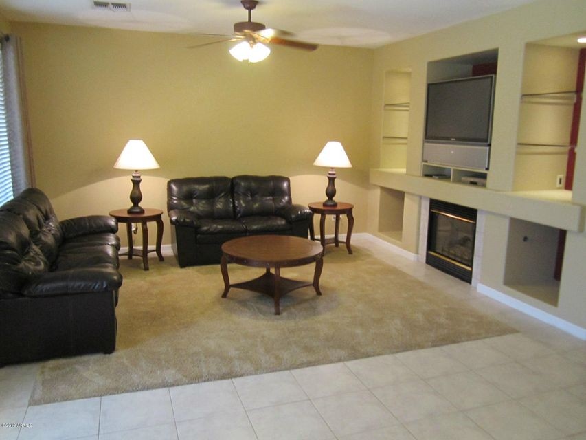 Four Bedroom, Three baths, and 3-car garage with fenced Pool! Lots of space in this place! Pool maintenance included. Downstairs is one bedroom/office with built-in bookcases. Upstairs are three bedrooms. There is grass in the backyard. Desert front yard.
