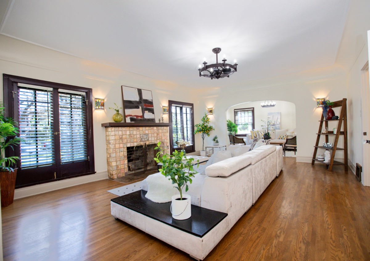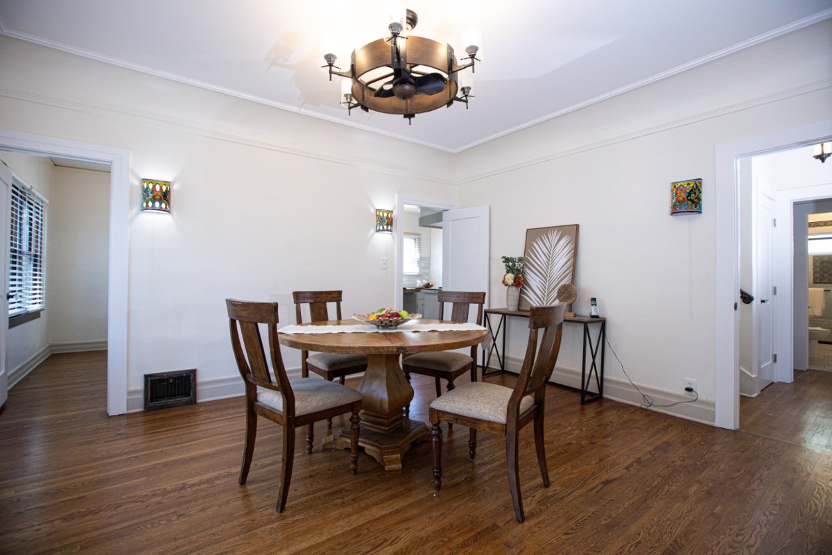 Each bathroom boasts exquisite artisan tilework and handpicked fixtures, while the colorful Spanish-tiled staircase adds character and warmth to the home’s historic soul. Upstairs, spacious bedrooms offer serene treetop views and abundant natural light.