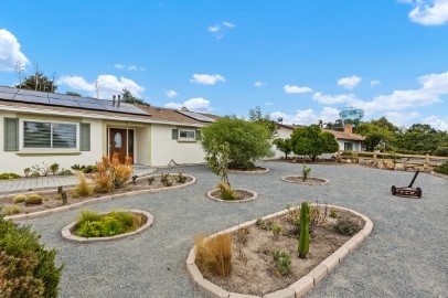 The primary suite opens to a charming private patio—ideal for morning coffee or quiet evenings under the stars. The backyard is a dream! Enjoy a sparkling pool, garden area, and mature fruit trees, outdoor covered patio with a sink and has an outdoor wood burning fireplace. on nearly half an acre of usable space—perfect for entertaining, relaxing, or simply enjoying the SoCal sunshine.