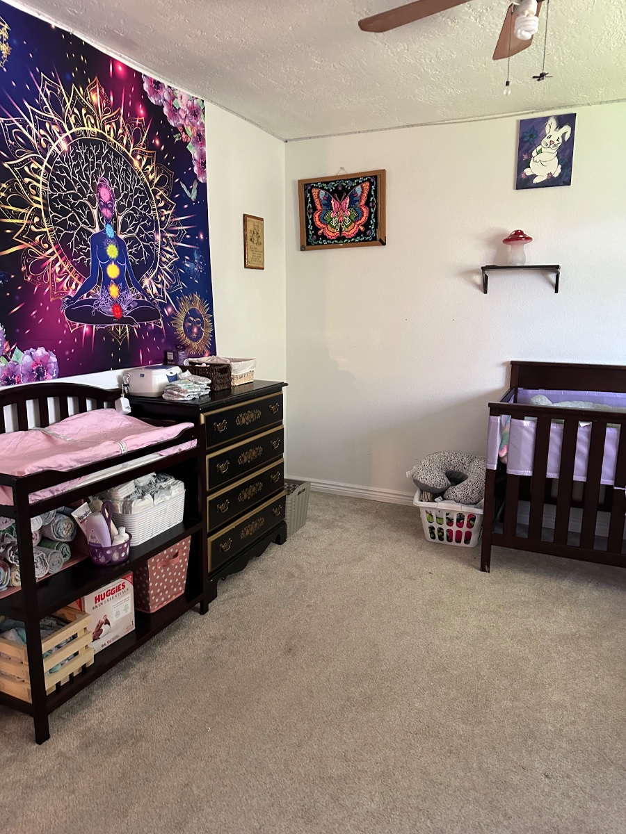 Four bedroom three bath house with two master suites. 15 miles from base Fenced yard quiet neighborhood. Water is a well system and included with rent.