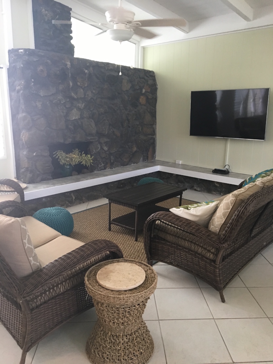 Large home minutes from Waimanalo Beach. Three official bedrooms with an additional bonus room that is typically used as a fourth bedroom. Two bathrooms have tub and shower and one bathroom has shower, but no tub. Large living and dining room. Decent sized kitchen with plenty of cabinet space. Also has a cute room with lots of built-in shelves and desks. That is great to use as an office, study, kids playroom. Large fenced yard. The home does have air conditioning. The home is also outfitted with Solar to help reduce electricity costs. Renters are responsible for electric bill and cable. In addition to the rent, GET taxes of 292.50 must be paid each month. Owner pays for water bill and mow and blow lawn service.