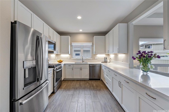 This 4 bedroom, 3.5 bath home offers authentic Hawaii living at its finest with all the amenities you could ask for: split A/Cs and fans in every large room, 9' ceilings, a walk-in closet for two in the primary bedroom, plenty of closet space in each bedroom plus an additional storage closet, granite kitchen counter tops in a spacious kitchen, separate laundry room, and an enclosed/attached garage, three parking spots; water and trash utilities included.